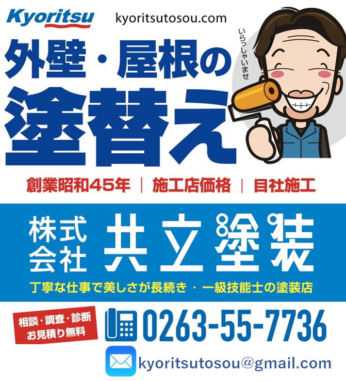 先代から創業50年 松本市、安曇野市などの外壁・屋根専門店 株式会社共立塗装
