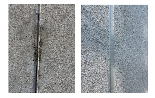 この部分がシーリング処理されていないと、ALC材の動きで盤間目地に隙間が生じ、雨水の侵入に繋がる恐れがありますので、新規シーリング打設を行います。