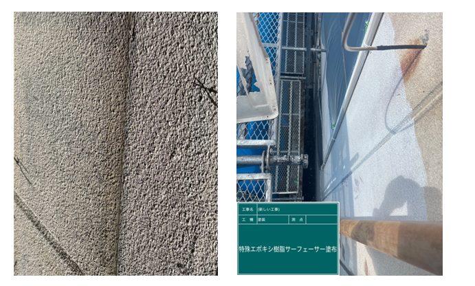 ひび割れに強い下地材を塗装することで、未来のひび割れを防ぐことが出来、爆裂が起きにくい建物を作ります。