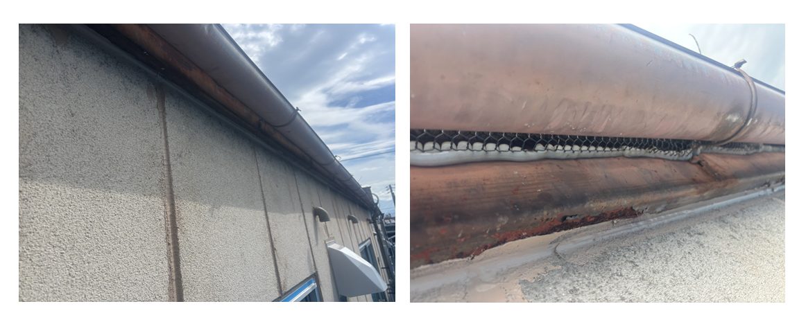 また、樋の変形により排出不良が起き、雨水が外壁・内部へ伝っていたことが分かります。